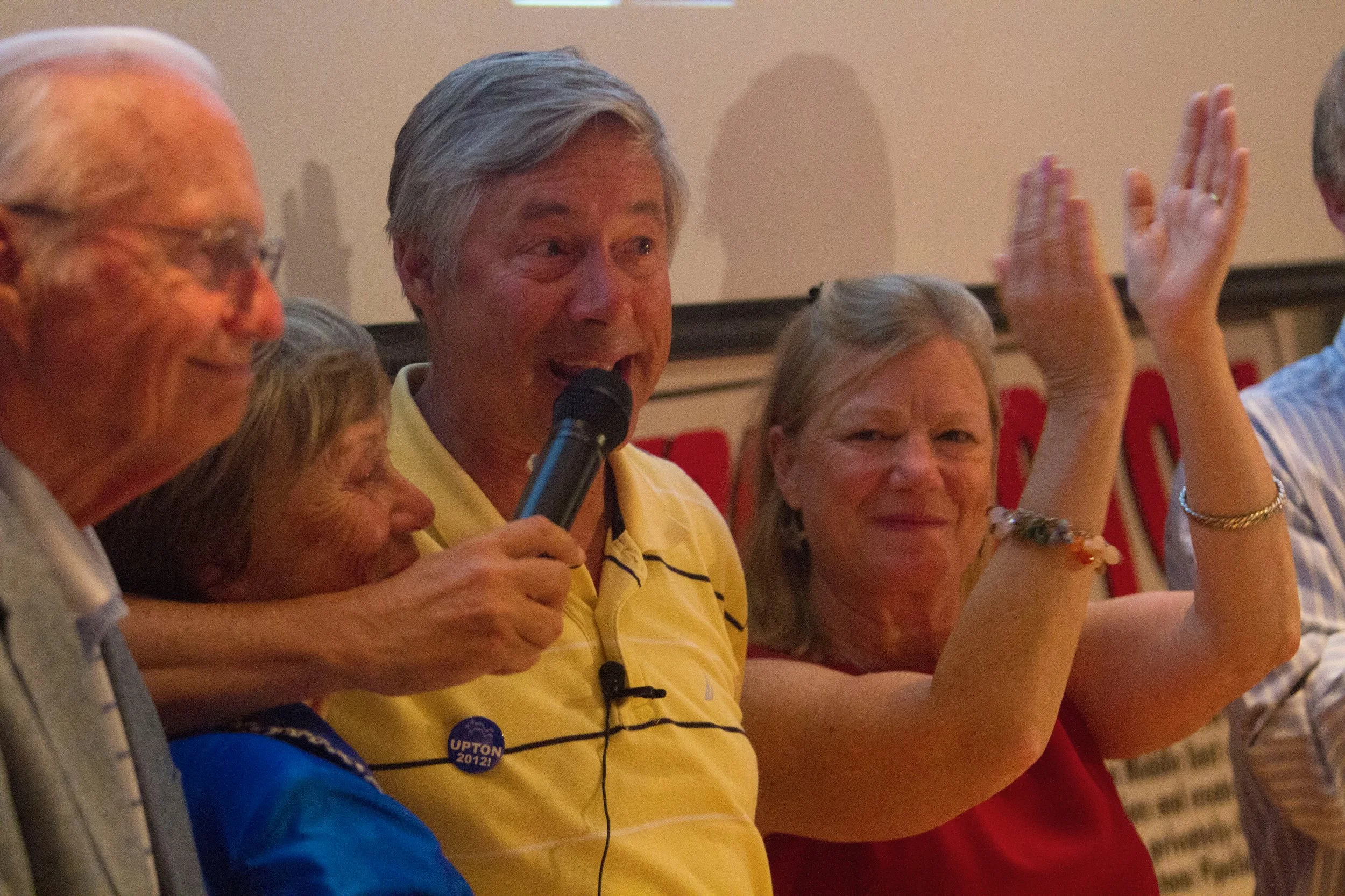 Right: Congressman Fred Upton addresses supporters after winning his primary election.